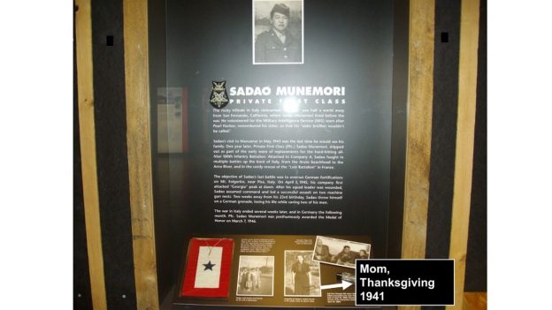 写真)Manzanar Interpretive Center展示サダオ・ムネモリ(旨森貞雄)上等兵
