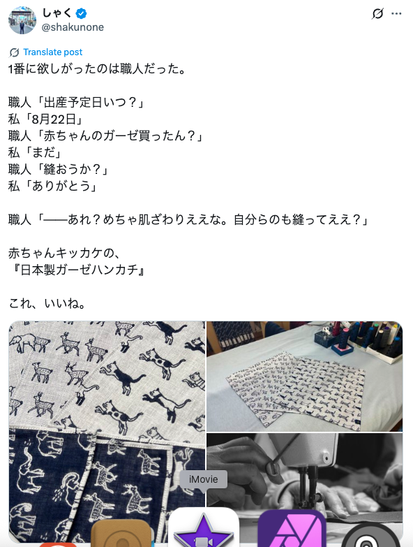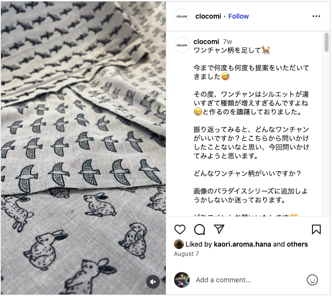 だからこそ、日本製について語るアカウントに方向性を定めたことでフォロワーが増えたのだと思います。「播州織ダブルガーゼハンカチ」は消費者ターゲットが広く汎用性が高くて可愛い。何より素材が良い。そういったものが乗っかった結果、化学反応が起きました。