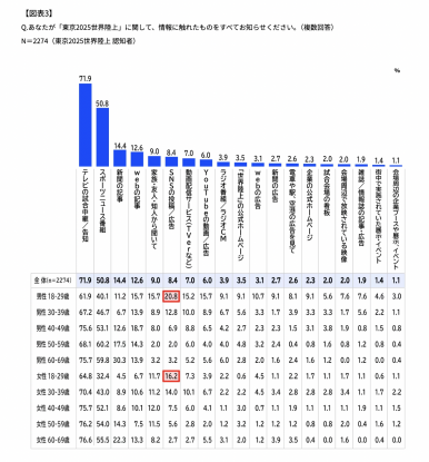 さらに、若年層男性において「Webの記事」への接触も15.7%と、全体平均(12.6%)を上回っている。彼らは受動的にテレビを見るだけでなく、能動的に情報を検索し、深掘りする。この「テレビで認知と感動を作り、デジタルで理解度を深める」という両輪こそが、今回の若年層の高い満足度(開催して良かった70.1%)を生み出した要因だろう。