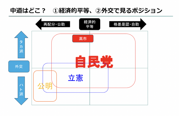 そうすると2大勢力を分ける争点は、結果的に、外国人問題をはじめとする共生社会、中国との外交関係が争点になるということだろう。