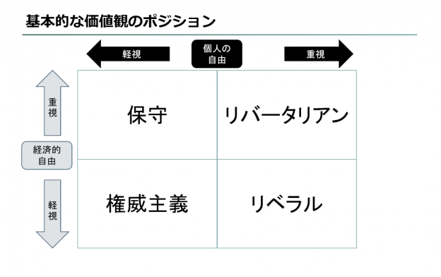 しかし、価値観軸で見ると、実は、政治思想は様々なパターンがある。