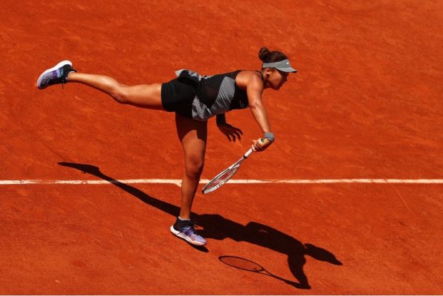 写真)全仏オープン初日 ルーマニアのパトリシア・マリア・ティグ選手とプレーする大坂なおみ選手 2021年5月30日、フランス・パリ