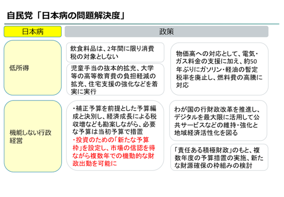 日本病とその問題解決としての「政策」は以下のようにまとめられます。